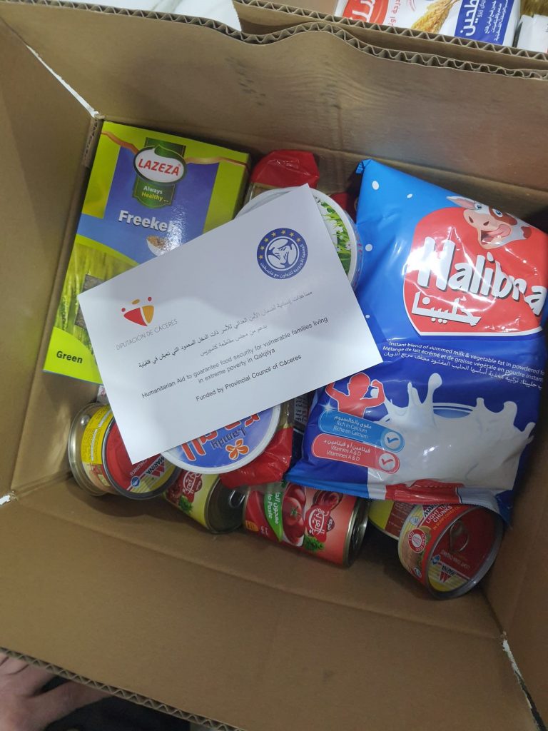 The project entitled “Guaranteeing Food Security and Basic Hygiene for Palestinian Families in Extremely Vulnerable Situations in Qalqilya” was carried out thanks to a grant received from the Provincial Council of Cáceres in the 2025 call for proposals.